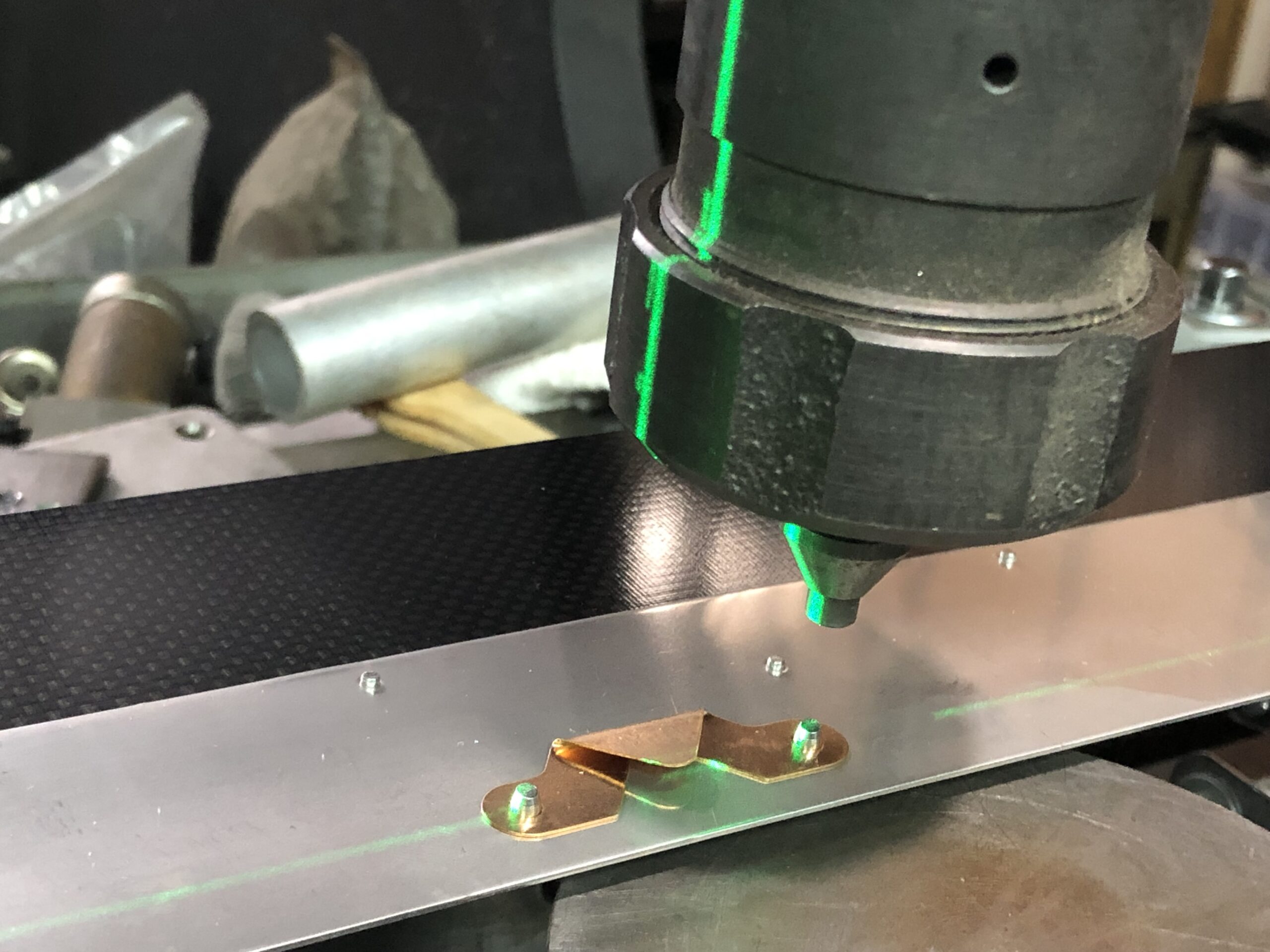 ハイテクとローテク 2026年1月22日 最終更新日時 : 2026年1月22日 nagayusu@mac.com リベット加工の話です。 量産品ではないので位置決めの治具を作るとコスト的に合いません。 初めの頃は目見当でリベットの位置決めをしていました。 でもそれだと打ち損じが出ます。 考えて考えた末に閃いたのが、レーザー墨出し機でした。 Y軸はレーザー、X軸は目見当、コレかなり良いです😉 リベットの打ち損じが無くなりました! 時間が短縮できて品質向上もできて、しかも低コスト。 まさに「必要は発明の母」です。 \ 最新情報をチェック / FacebookXBlueskyHatenaCopy